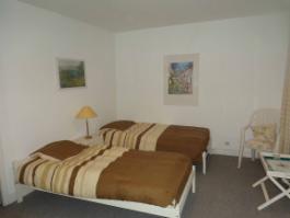 Une chambre au rez de chaussée avec 2 lits de 90. Au rez de chaussée également, la salle de bain avec douche et wc. A l'étage , une autre chambre avec un lit de 160 et un salon très lumineux et agréable, équipé également d'une télé. Possibilité d'un couchage supplémentaire avec un lit-cage. A votre disposition , lit parapluie, chaise haute...